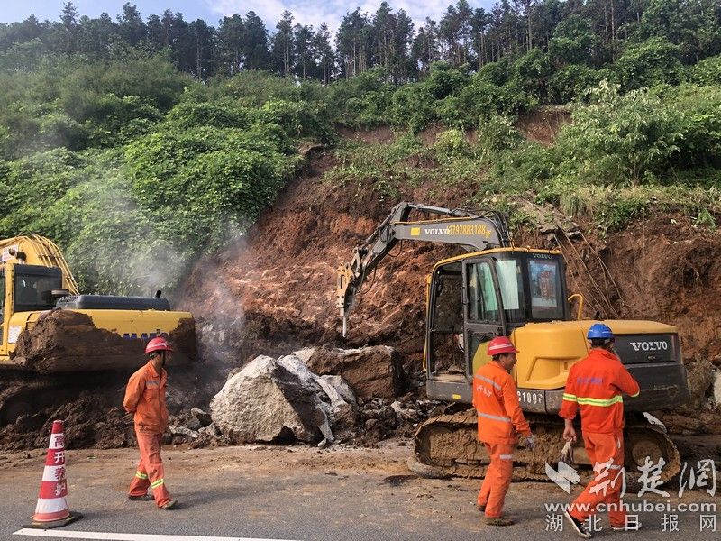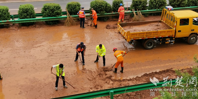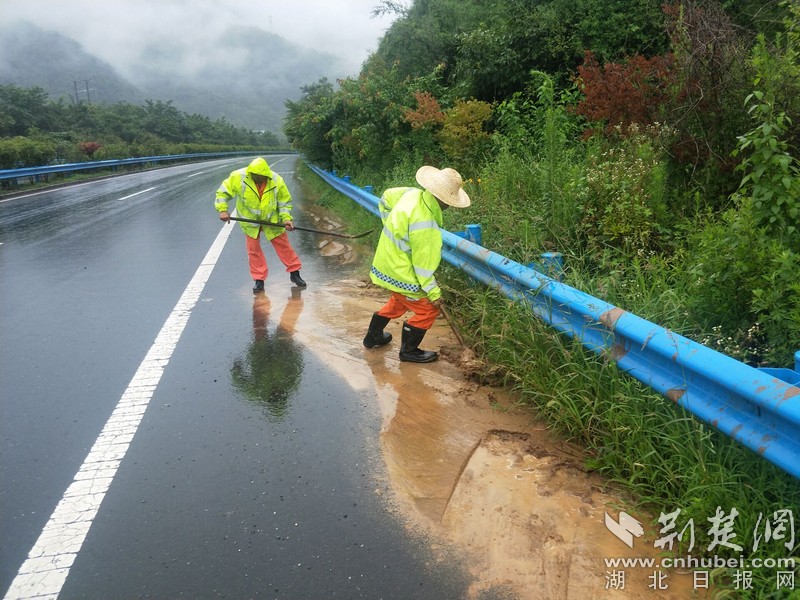荆楚网客户端—荆楚网消息(通讯员 金伟忠、宫正、程生宏)近期受持续强降雨天气影响,面对山区道路易发泥石流、边坡垮塌等灾害的严峻形势,湖北交投鄂西北高速公路运营管理有限公司全员上下一心不等不靠,以“雨情就是命令、保畅就是责任”为己任,全力以赴奋战在所辖鄂西北地区随州、襄阳、十堰三地市境内7条路段662公里高速公路通道上,夜以继日坚守防汛第一线,抓落实保安全,排险情保畅通,履职责担使命,为山区人民群众畅行高速公路保驾护航。