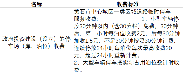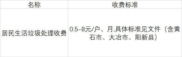 黄石市实行政府定价的涉企收费标准清单