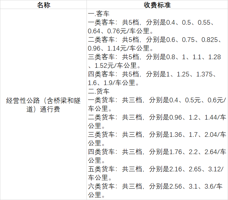 经营性公路(含桥梁和隧道)通行费