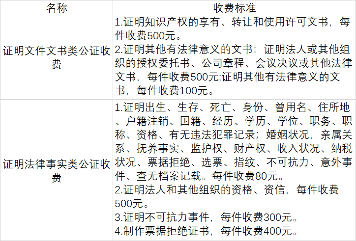 公证服务收费