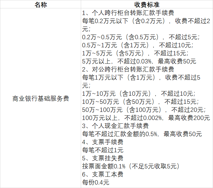 商业银行基础服务费