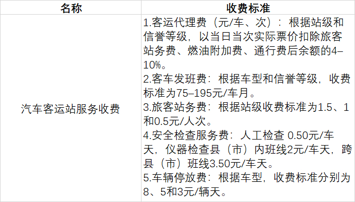 汽车客运站服务收费