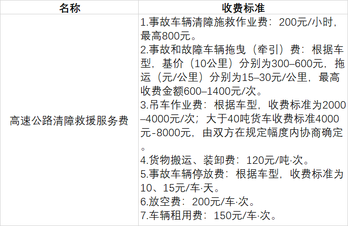 高速公路清障救援服务费
