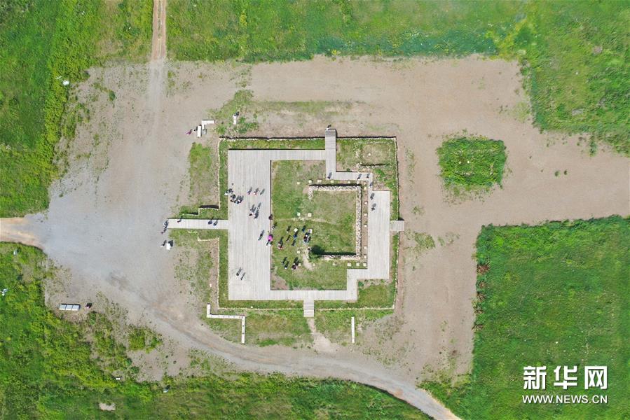 7月22日,游客在元上都遗址参观(无人机照片)。 新华社记者 徐钦 摄