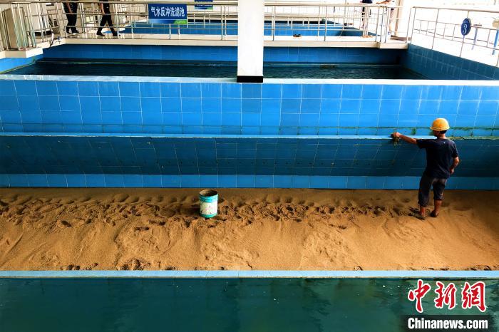 恩施市的水厂工人在清洗气水反绿洗滤池 董晓斌 摄