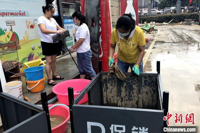 恩施城区供水逐步恢复,市民清洗店铺 郭晓莹 摄