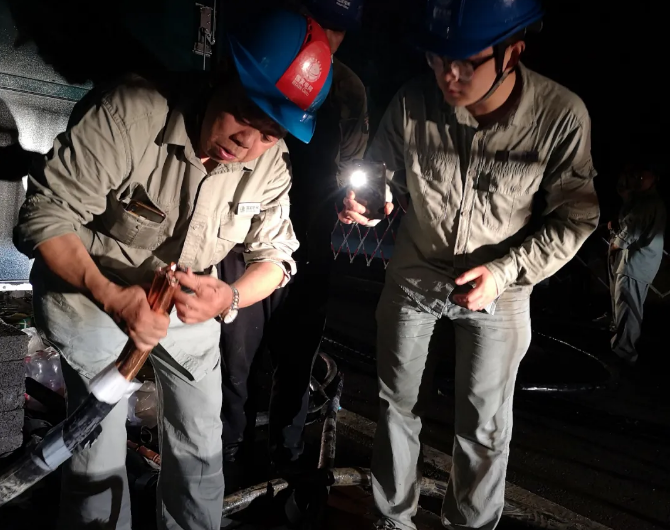 ▲不分昼夜的抢修,保证城区受灾人民早日通上电