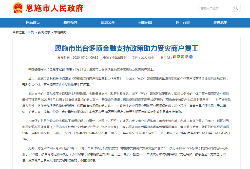 7月25日上午10点,恩施州防汛抗旱指挥部通报恩施城区灾后重建保民生的相关情况,截至目前,灾情已稳定。