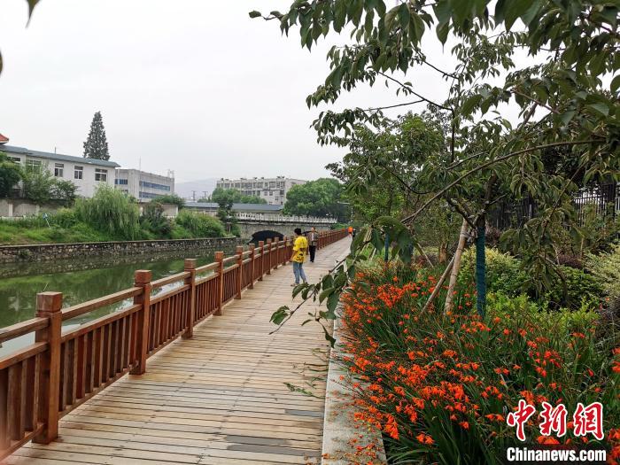 其中,260米长的木栈道是西护城河边新修的景观通道,拉近古城和岘山的联系,打造两岸五百多米具有江南水乡风格的景观带,步移景异,以新中式风格为主,古今兼顾,沿线规划形成狮子楼、南湖等重要景观节点,还有河津樱、黑松、铁冬青、千鸟花等上百种园林特色植物,保障四季观赏效果。