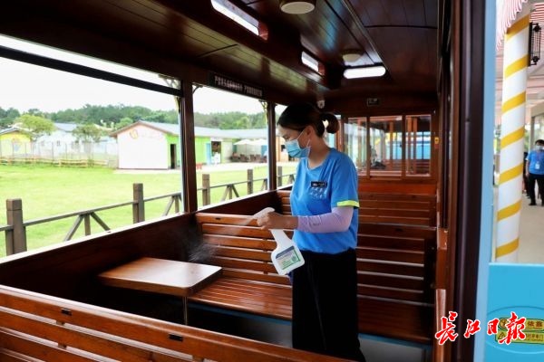 信阳百科旅行社这次组织超过250人来汉。“7月23日中午一点半发的收客广告,第二天上午团队就收满了,很多游客没报上名,还说要加钱参团。”旅行社负责人张亚青说。为了在当地推好木兰草原等武汉线路,张亚青7月13日、14日专程带着两岁的女儿和家人来汉考察。她陆续晒出景区的加强防疫措施公告、随处可见的卫生提醒、景区门口的自动测温门、进餐厅要人人用酒精啫喱消毒、小火车每趟运行完都要逐座消毒……一个个细节,让信阳的同行们看到——“武汉是很安全的地方”。张亚青的打卡照,也成了大家推介武汉的“活招牌”。张亚青表示,武汉的旅游产品丰富、特色突出,对河南游客很有吸引力。希望政府可以组织更多活动并就疫情防控成果进行更多宣传,一定可以吸引更多外省游客前来。