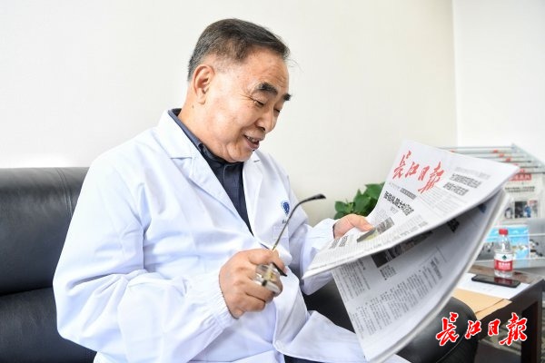 张伯礼院士在阅读《长江日报》往期报道。记者苗剑 摄