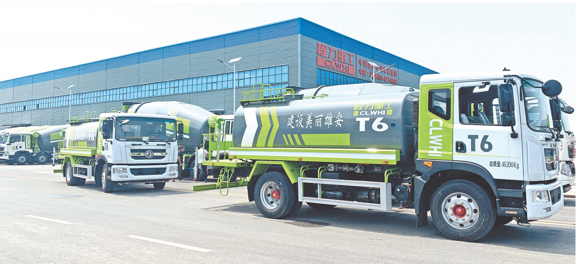 7月24日上午,位于黄陂区祁家湾街道的程力重工产业园,一辆辆排列整齐的洒水车整装待发,准备发往雄安新区。“这是运往雄安的第一批货,是6月份在黄陂电商直播节上签下的订单,给雄安新区一年生产200台。”该企业常务副总经理李会成告诉记者。