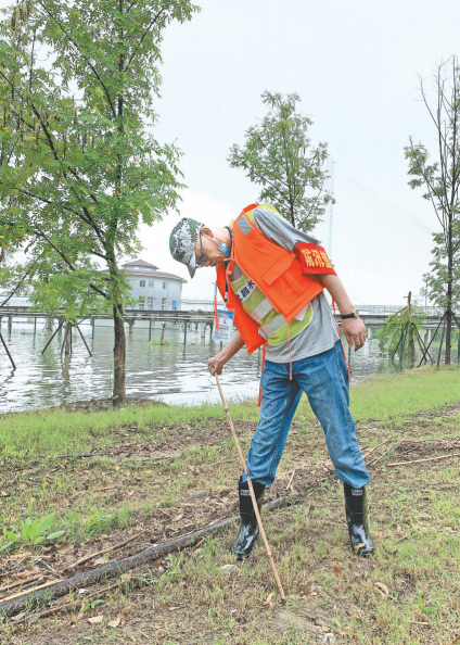 “今天上午,巡堤员在巡查过程中发现若干个老鼠洞。”王祥边走边告诉记者,巡堤员在巡查过程中要非常细心、细致,这样才能发现问题,及时排查风险隐患点。一旦发现散浸、可疑渗水点,找到跌窝、老鼠洞或蚂蚁窝,就要插上小红旗,立即上报指挥部,请水务专家现场研判,及时处置,消除风险隐患。