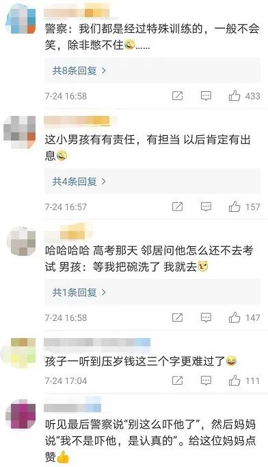 “第一次可以原谅,但如果再有第二次,蜀黍就不原谅你了。”了解情况后,民警耐心教育并开导了小男孩,让小男孩帮妈妈多做家务“弥补”自己的过错,帮家人洗碗抵消赔偿金,“他总共赔偿的金额是4000元,那我让他帮家人洗碗,一个碗抵消5毛钱。”