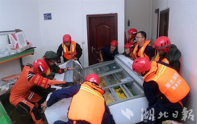 在建始县城的南山新村、小河边等地,由于广润河河水暴涨,周边街道低洼地带的民房被淹,积水最深处达3米,大量居民被困家中。结合现场情况,消防救援人员组成5个救援分队,携带救援装备,驾驶橡皮艇、冲锋舟涉水挨家挨户搜寻被困人员。面对湍急的洪流,消防救援人员不惧艰险,逆流而上,以肩为梯,以背为桥,搭起生命通道,紧急营救转移被困群众700余人。兵不卸甲,马不卸鞍。完成被困群众营救和疏散转移任务后,消防救援人员按照地方党委政府的统一调度,连续作战,积极投身灾后“重启”工作,集中到长梁镇陇里大道进行淤泥清扫、门面清理和物资转运,助力群众尽快恢复生产生活秩序。