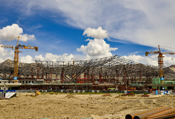 这是7月27日拍摄的拉萨贡嘎国际机场T3航站楼施工现场。