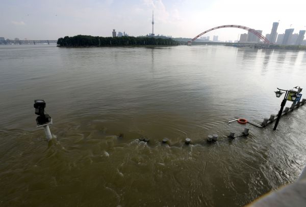 长江网7月28日讯7月28日,长江持续超警戒高水位运行。28.50米,28日18时,武汉关水位比前一天上涨0.13米,超警戒水位1.20米。 汉口龙王庙亲水平台部分护栏没顶。记者刘斌摄影报道
