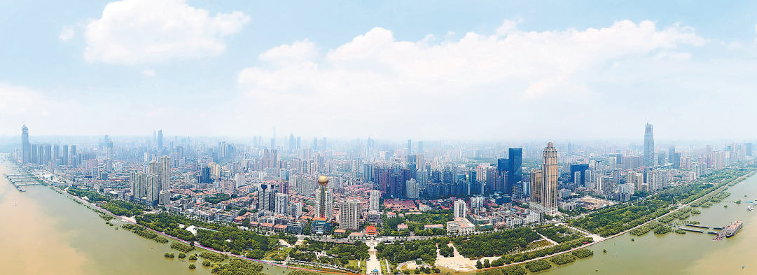 7月23日,武汉上空蓝天白云分外靓丽,在汉口沿江看到,晴好天气下的空气透视度极佳。
