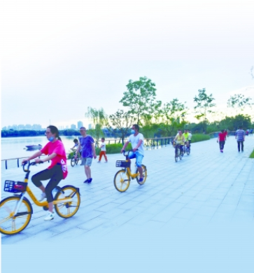 虽然已入中伏,武汉气温依然比较“凉爽”。7月27日18时许,不少居民到金银湖绿道骑行、散步。