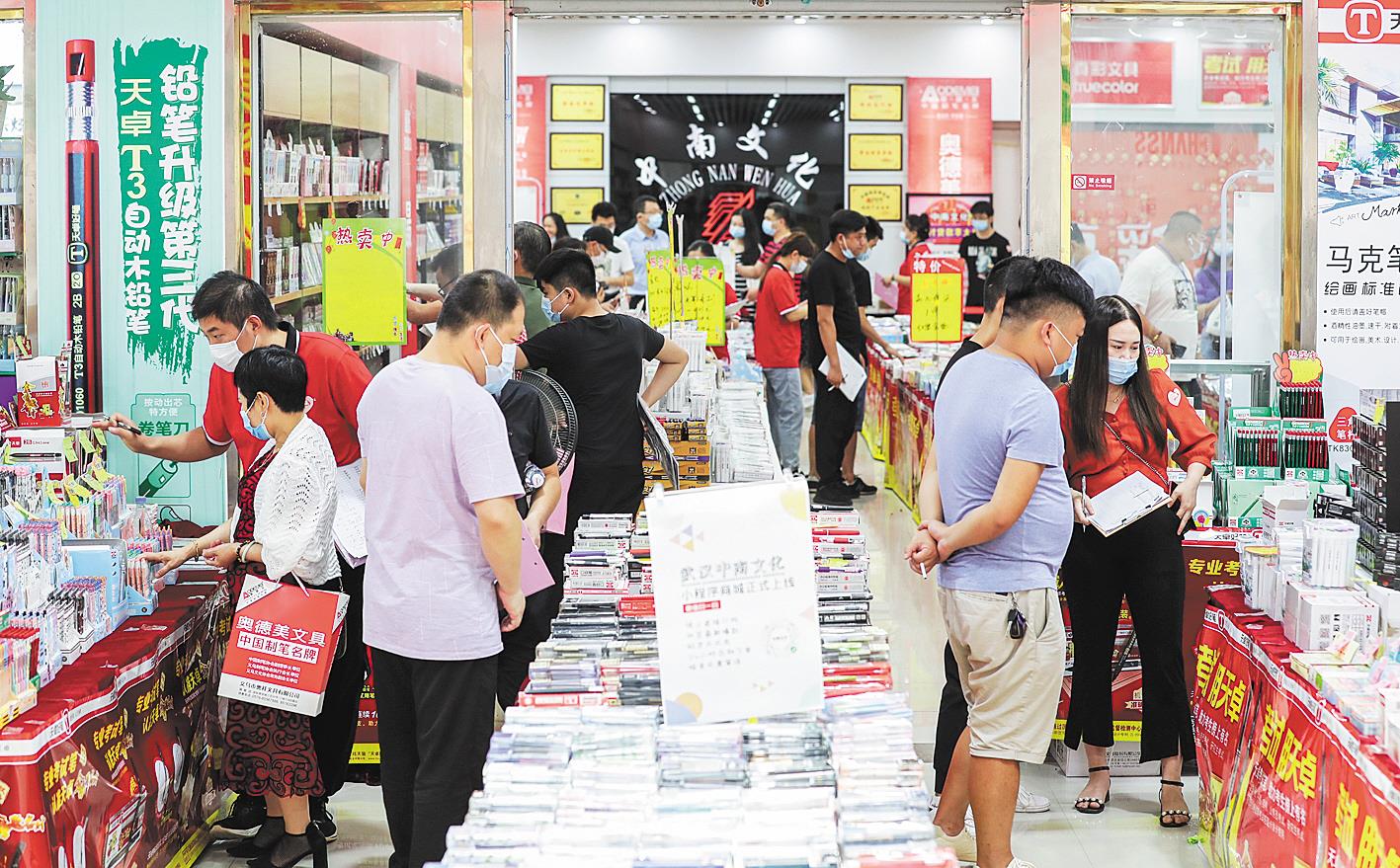 湖北日报讯 (记者刘天纵、通讯员刘春) 7月28日,第八届汉口北夏季文博会开幕。在文体用品城一楼,来自陕西省安康市的批发商曾文涛订购了上十万元的书本和玩具,为9月开学季备货。