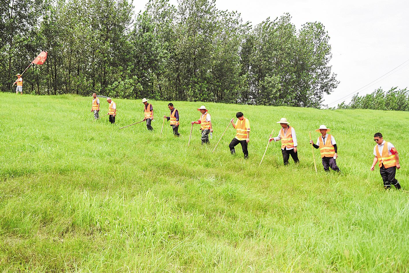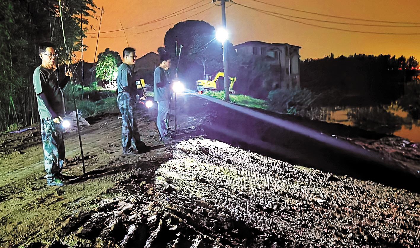 连日来,江陵县干部群众奋战在荆江大堤,24小时不间断巡查堤段。(视界网 黄志刚 摄)