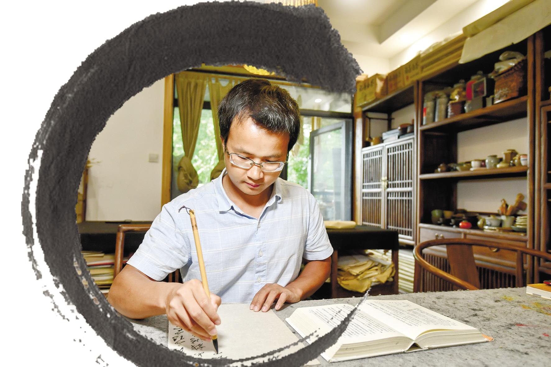 7月13日,32岁的中国书法家协会会员、湖北省青年书协副秘书长胡飞,在位于汉口的家中接受了楚天都市报记者的专访。