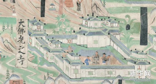 这是敦煌壁画《五台山图》中的“大佛光之寺”(资料照片)。新华社发(敦煌研究院供图)