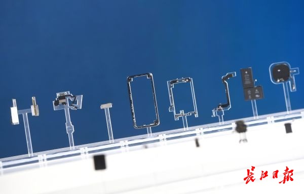 展品区内为手机模块呈现,从模块零件到拆开后的每一个零配件,都进行了深入分析。