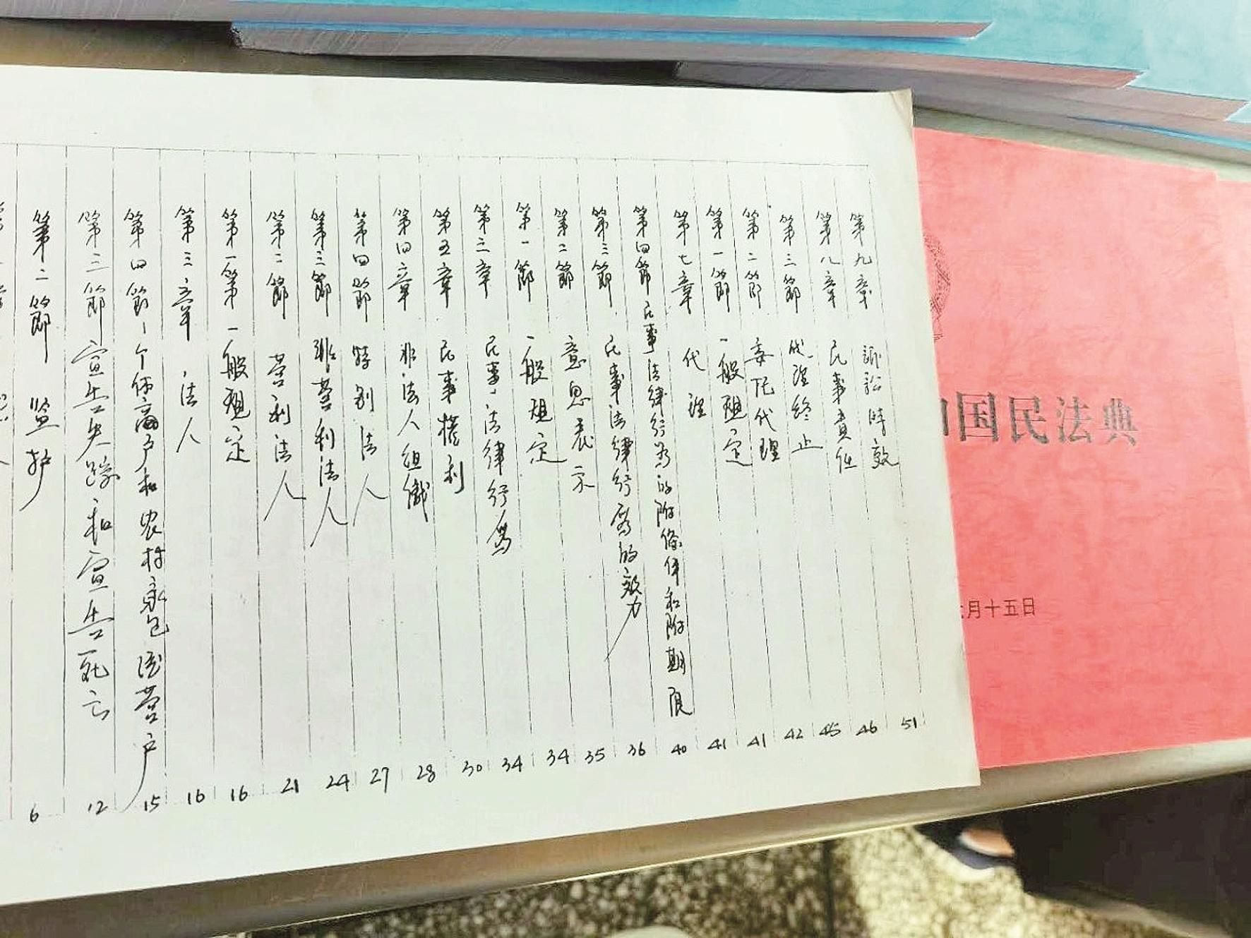 当问到为什么想要手抄《民法典》时,老唐笑着说:“今年5月28日,十三届全国人大三次会议表决通过《民法典》。《民法典》方方面面都写得很全面,我们每个人都应该认真学习!”