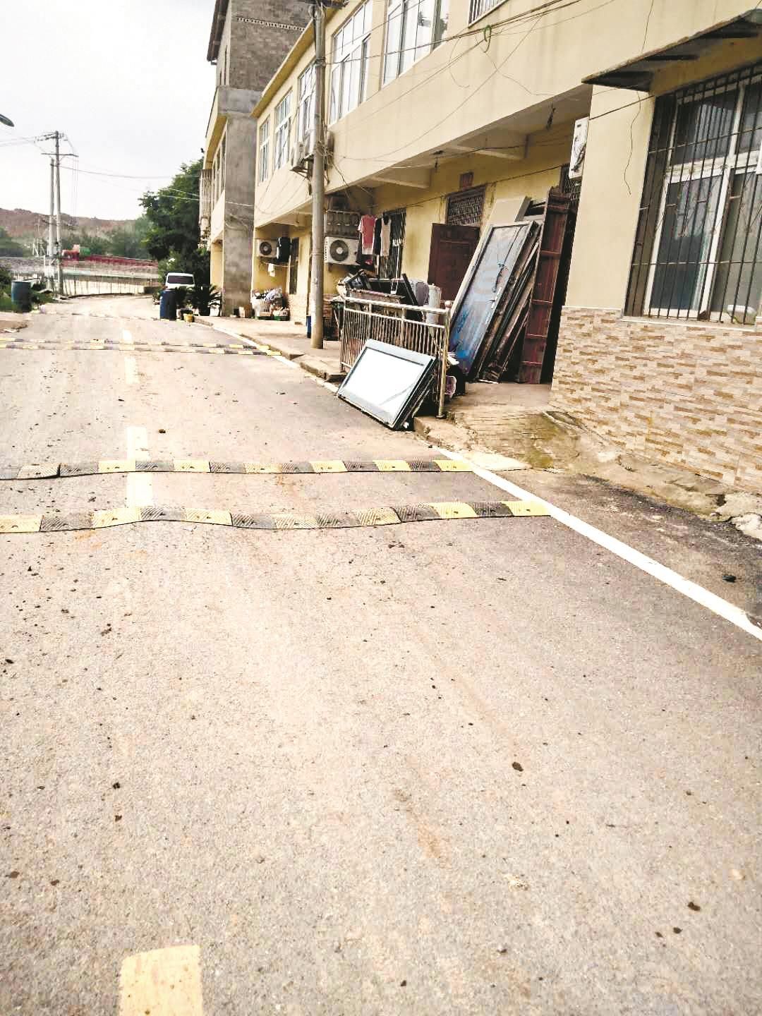 村道就在居民房屋前,重载车经过,居民不胜其扰