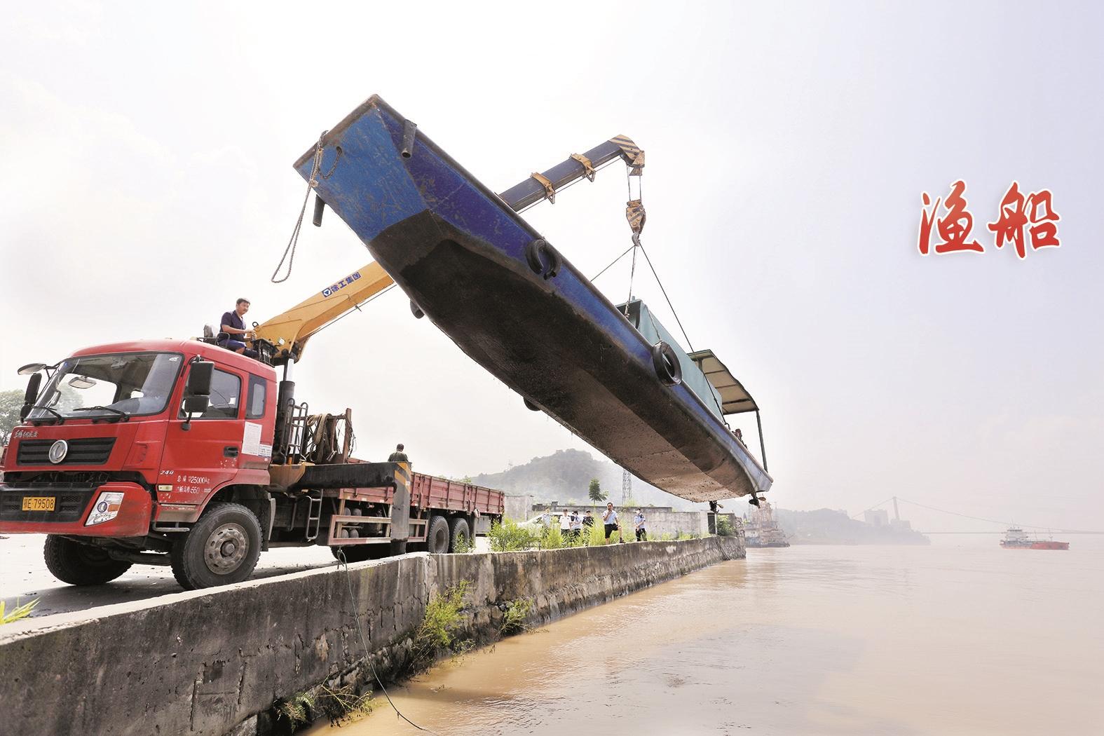 7月29日,长江伍家岗临江溪至龙盘湖段水域,来自伍家岗区农业农村局、区城市管理执法局、区司法局、市渔政监察支队、宜昌港区海事处艾家河执法大队、长江航运公安局宜昌分局宜昌派出所、伍家岗街办、伍家乡8个部门的20余名执法队员将一艘无船名船号、无船籍港、无船舶证书的“三无”渔船强制起吊上岸封存。据介绍,为全面落实禁渔令,伍家岗区全面清查辖区江段内的“三无”渔船,并对筏钓进行现场拆解销毁处理。 三峡晚报全媒首席记者郑岚 通讯员杨玉柏/文 记者景卫东/图