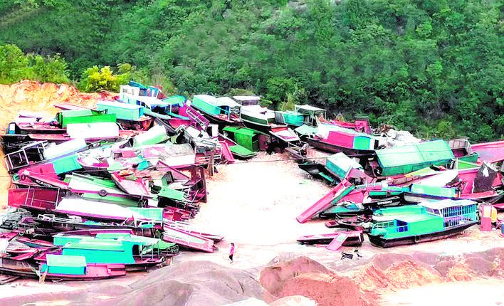 7月29日,巴东县官渡口镇五里堆社区一露天场地,百艘渔船开始拆解。