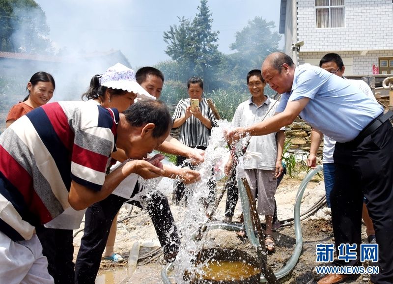 2018年7月23日11时,海拔1094米的保康县店垭镇徐家堰村一组机井成功出水。新华网发 陈泉霖摄