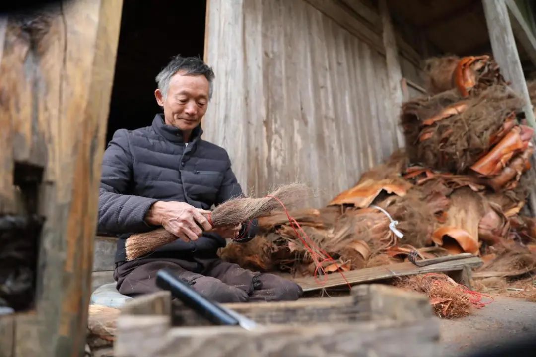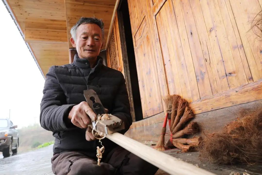 孩子一天天长大,负担越来越重,依靠几亩地已入不敷出。“何不扎扫把试试?活儿也轻松,全是手上活。”一天,徐丕军看见屋角放的棕扫把,想着棕树和竹竿可以在屋边就地取材,扫把又是家家户户的必需品,应该是个增收的好门路。