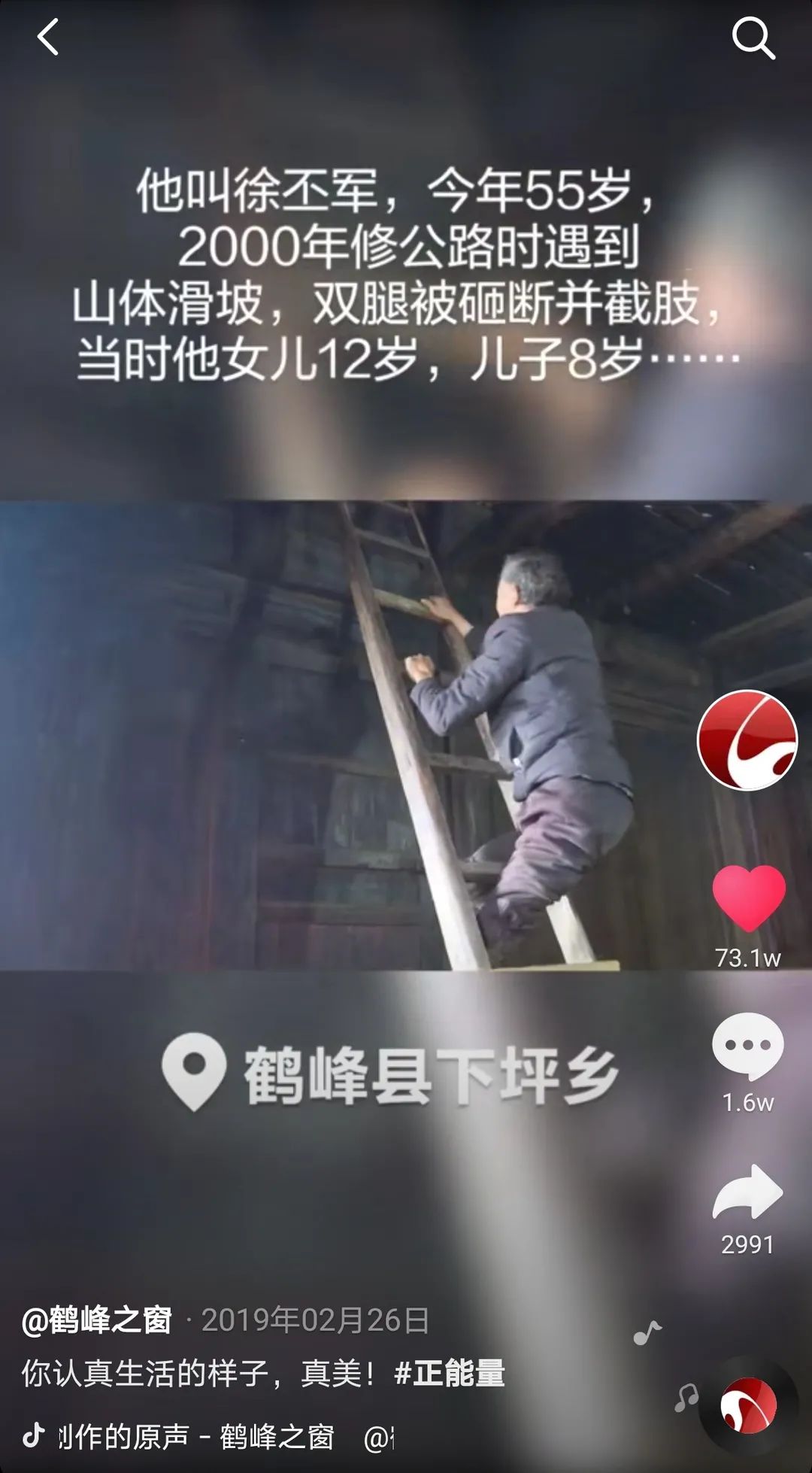 徐丕军是鹤峰县下坪乡东洲村村民是当地群众口中的“无腿硬汉”。