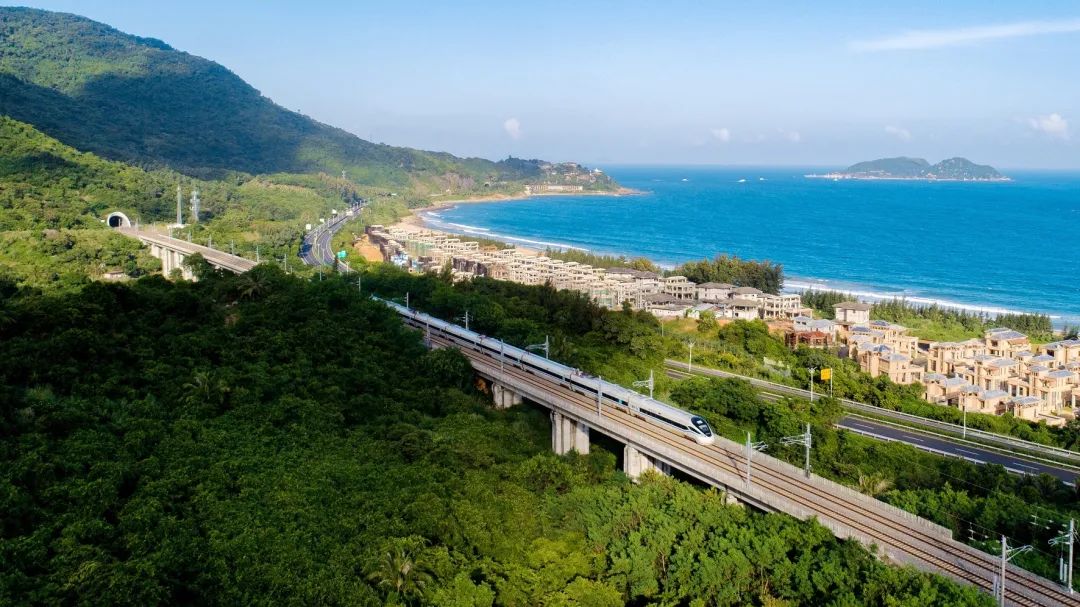 乘坐海南环岛高铁,看遍沿岸美丽风光。海南环岛高铁是一条低碳、环保、安全、舒适的绿色通道,为热带岛屿高速铁路建设、管理和运营提供了宝贵经验,更为全世界海岛及沿海地区高铁推动经济发展提供了范例。