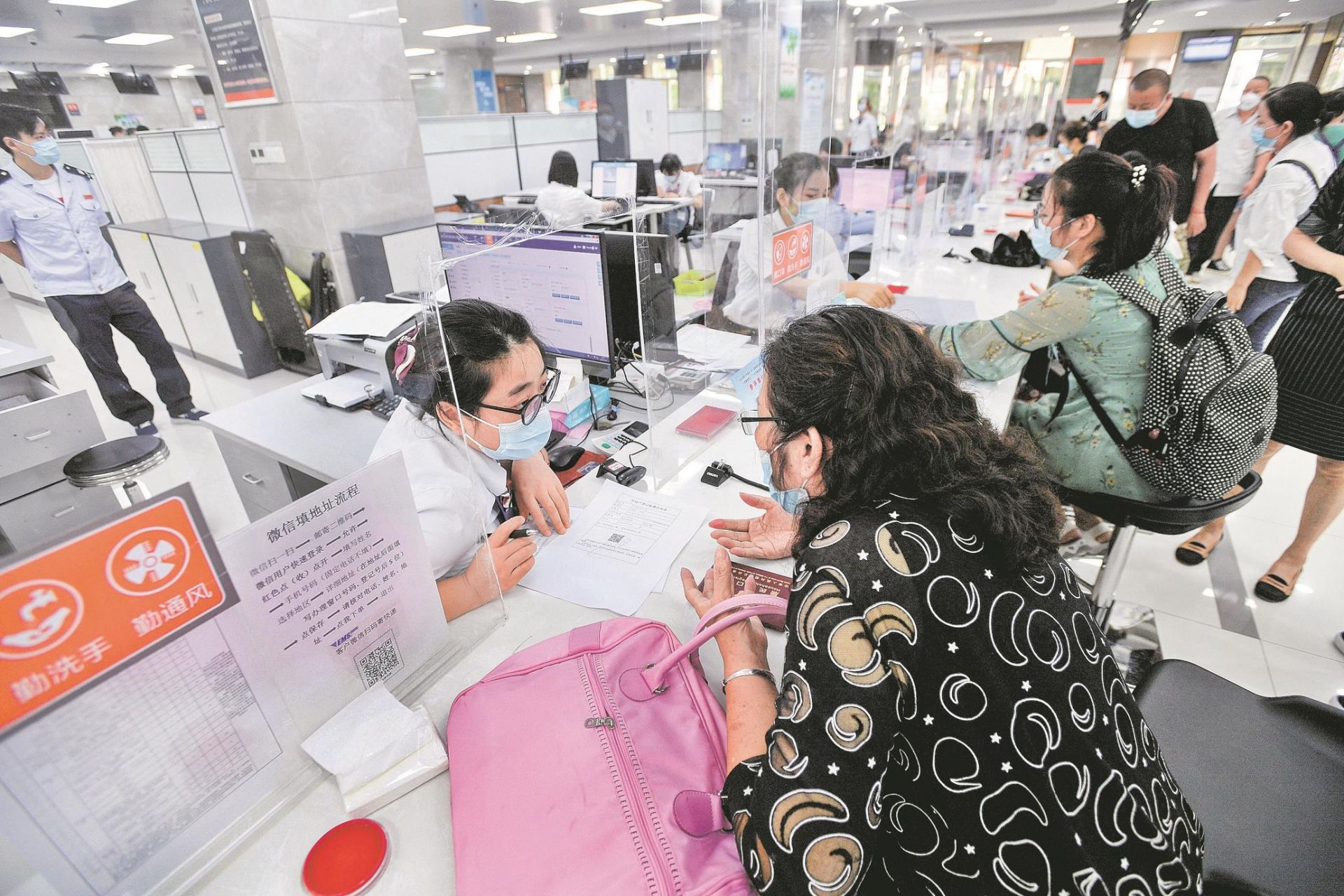 唐女士还表示,隔着透明隔离挡板也有些听不清,建议能像银行一样加个扩音器。