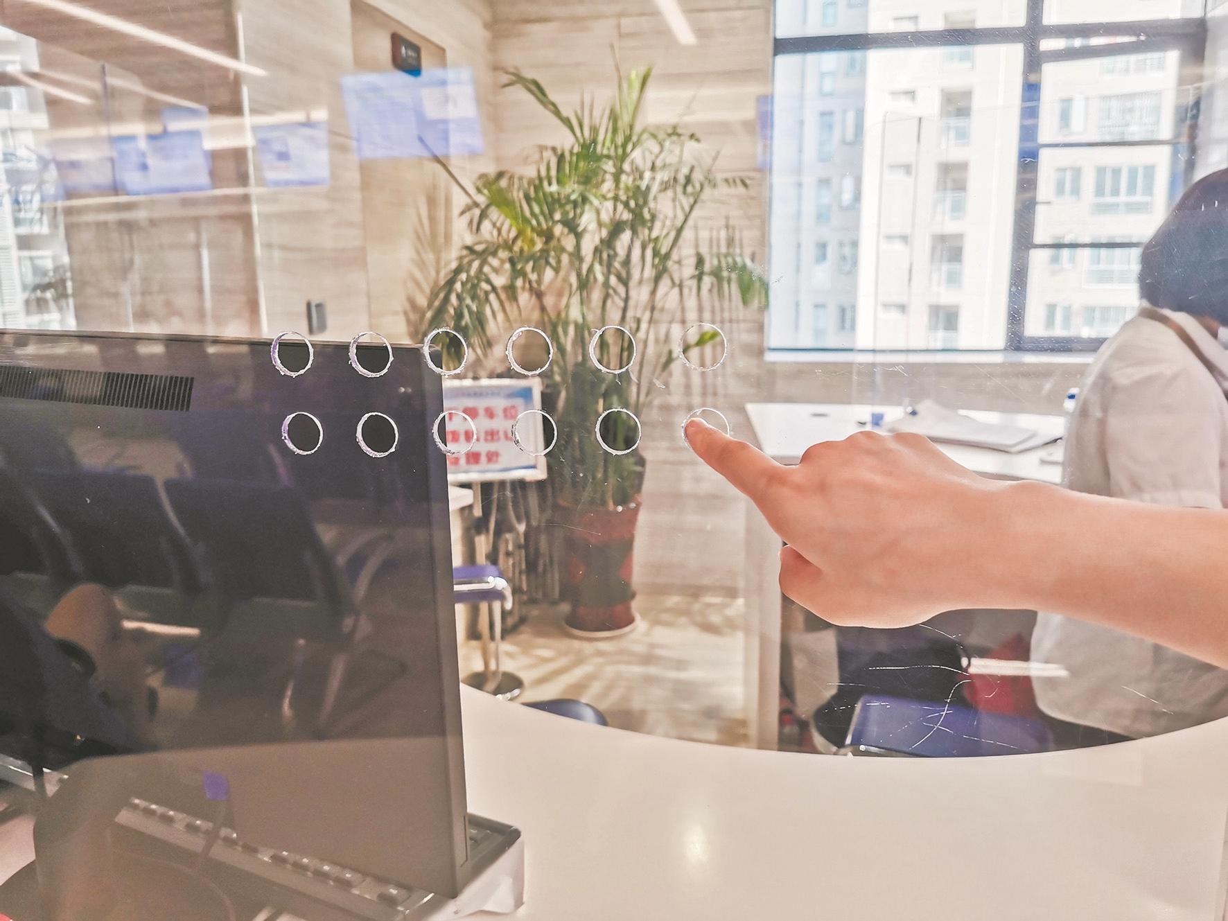 该不动产登记窗口权属武汉市自然资源和规划局江岸分局调查与确权登记科。该局常驻江岸区政务服务中心的外包公司负责人殷莎丽告诉记者:“疫情期间办事窗口都装置了透明隔离挡板,一定程度上影响群众办事体验。目前我们正在更换新的挡板,上面设置了几个小孔,让市民能听得更清。后期还会看室内嘈杂程度,适当增加一批扩音器。”