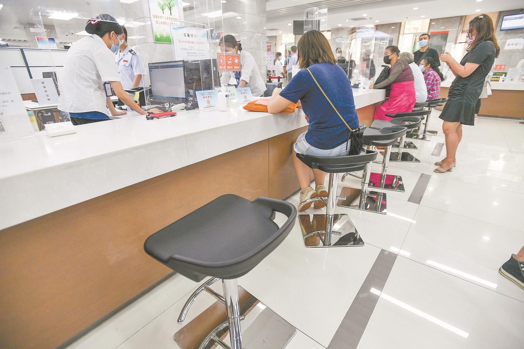7月29日下午,记者来到江岸区政务服务中心看到,二层和三层共有22个不动产登记窗口,窗口前都装置了透明隔离挡板。
