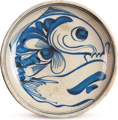 这个生活在齐鲁大地上的农人,随时都努力表现着他对美感的追求。每个年节要制作花馍,面粉在巧手下变成驱邪的龙虎、盛放的花朵、多籽的石榴、取经西去的师徒四人和白龙马,不仅形似还要点染出丰富的色彩。刻有各种吉祥图案的馍馍磕子也要派上用场,这比制作花馍简单,只需一磕,就能召唤捣药的玉兔、月中的仙子,对拙于捏塑者,确是一种福音。这样精美的食物,一定要用博山鱼盘来盛。洗练、流畅的鱼纹,和花馍多么般配。用绘有戏曲故事的茶壶,给自己倒上一碗茶,轻松一下。这时天色已暗,点上油灯。这灯一定要成双,可以是两只瓷狮顶着蜡扦,也可是一对绿釉鹦鹉衔着油灯碗,或者干脆把灯盘成福字。夜渐深,劳作了一天的人枕着牡丹蝴蝶瓷枕,沉沉睡去。他一天的行踪,都被贴在厨房的灶王夫妇“暗中观察”。就这样他度过了生命中的一天天。