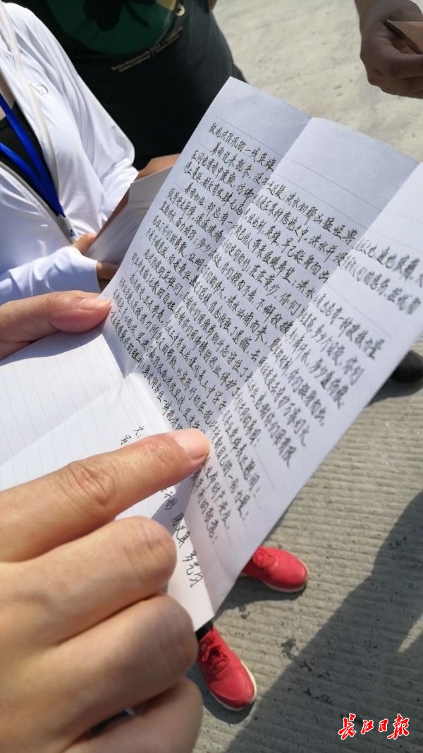 武汉三中学生送到黄金口险段的感谢信。见习记者常丽华 摄