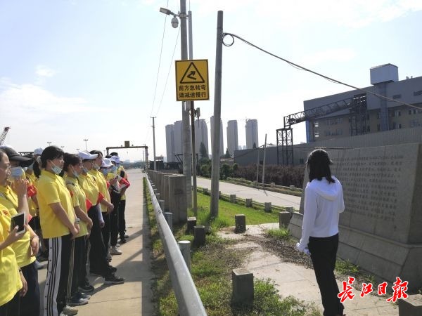 永丰街燎原社区书记谢静给学生们讲解黄金口险段的历史。见习记者常丽华 摄