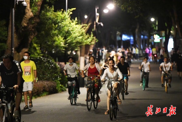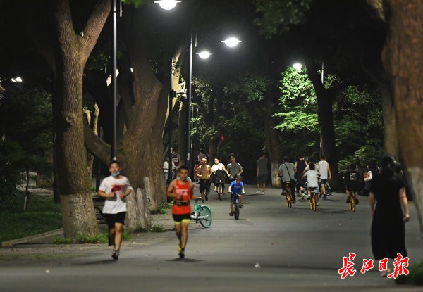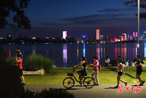 长江网8月2日讯 8月1日晚8时,东湖绿道上夜骑、夜跑的健身运动爱好者成群结队,凉爽的湖风和绚丽的夜景吸引了众多市民来此纳凉打卡。记者高勇 摄影报道