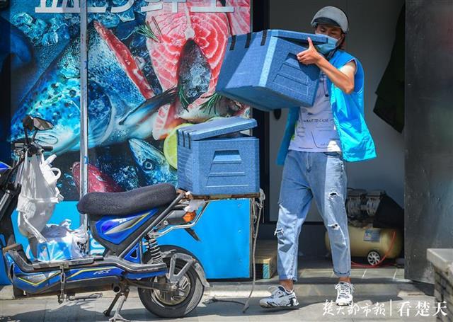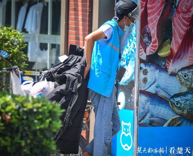 楚天都市报讯(记者张万军 刘中灿)8月2日上午,在武昌张之洞路有位戴头盔的小哥在一辆电动车旁,脱掉厚厚的棉衣,露出蓝色小马夹,再从旁边搬来两只泡沫箱码在电动车后。记者上前打听,原来是配送小哥穿着棉衣从冻库拿货出来,正要给客户送货去。