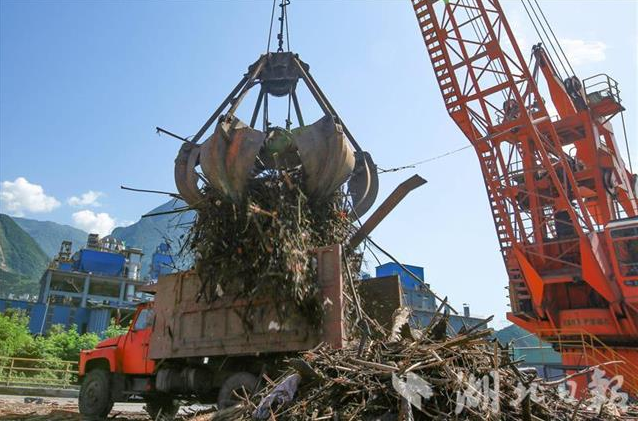 当地组织清漂工人将漂浮物打捞,集中运至三峡大坝上游50公里的秭归县郭家坝镇童庄河湖汊华新水泥专用码头。华新水泥厂将漂浮物起吊卸载转运至环保处置车间,经过破碎、烘干、燃烧等生产流程后,“变身”为水泥填充料,产生的余热发电后并入国网。困扰人们的长江水上漂浮物,“变身”替代燃煤成为水泥生产的绿色新能源。(视界网 王罡 黄善军 摄)