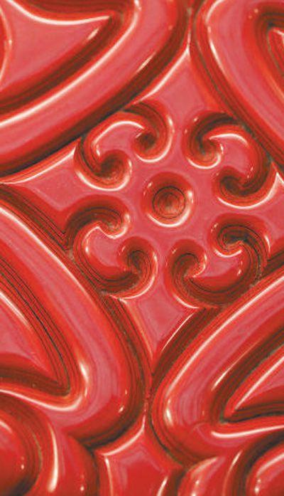 大都会博物馆馆藏的朱面剔犀剑环纹漆盒。黄 翼摄