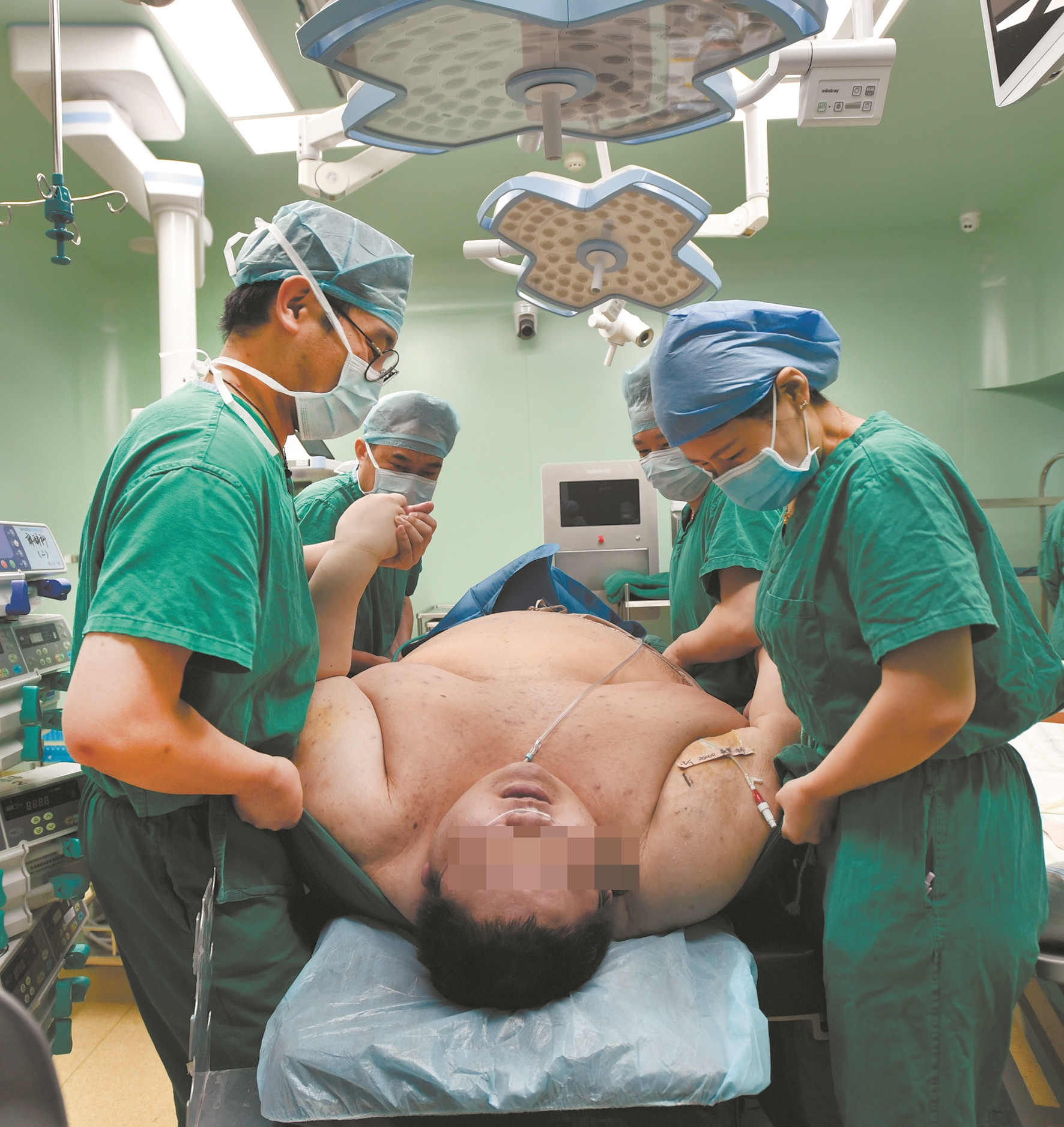7月23日下午,十余个科室的专家一起为他制定手术方案。专家们认为,周先生的减重治疗已进入“瓶颈期”,再进行内科减重效果不明显,持续有效减重只能通过缩胃手术。