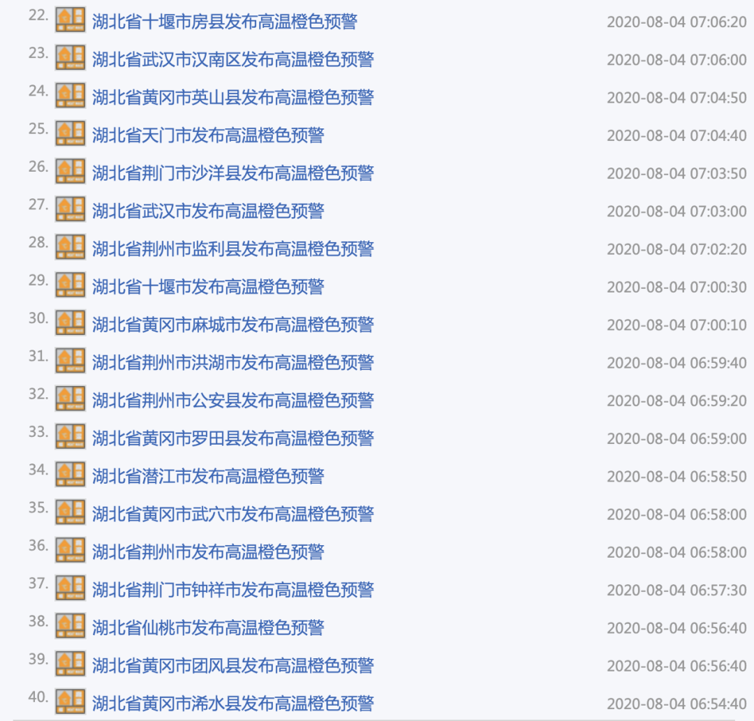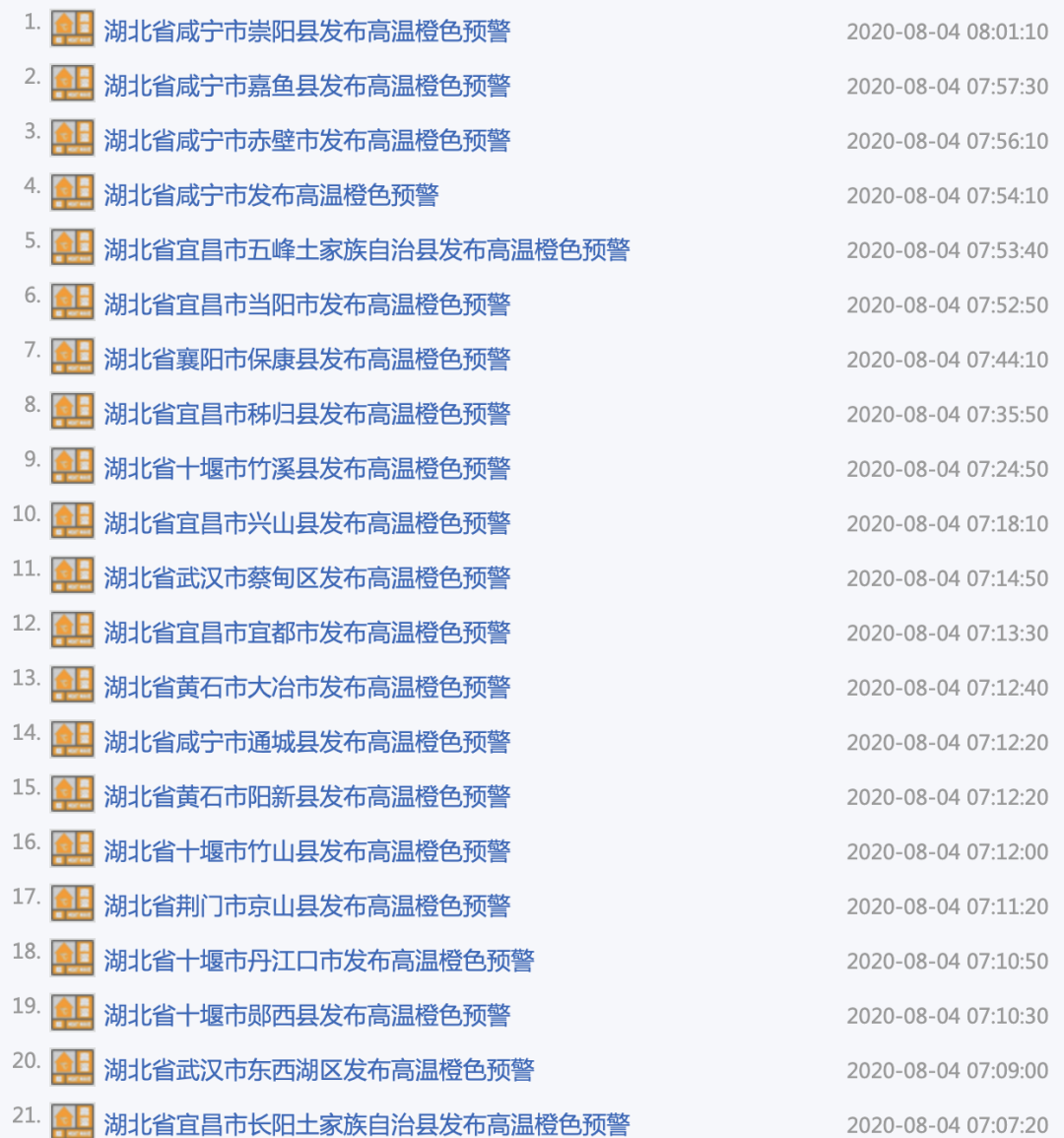 截至8点01分,湖北今日已连发超50条高温预警,省内大部分地区气温将升至37℃以上,局部甚至高达39℃。