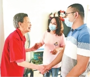 青山区钢花村街119社区第一网格班子成员和下沉党员一起看望社区老人。