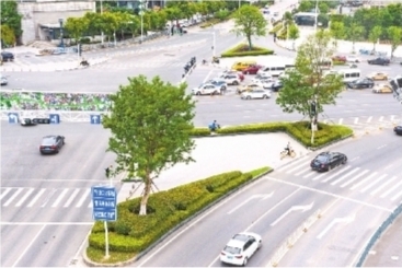 汉口范湖路与常青路交会处渠化岛补栽的行道树。